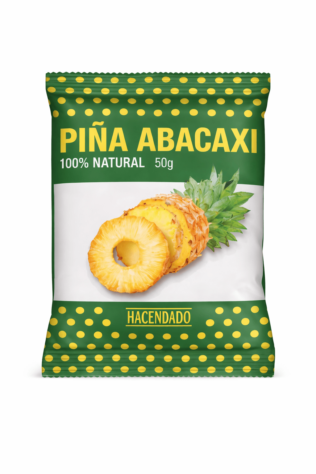 Сушёный ананас Hacendado — это 100% натуральный продукт без добавления сахара и консервантов. Сохраняет яркий тропический вкус и аромат свежего ананаса.