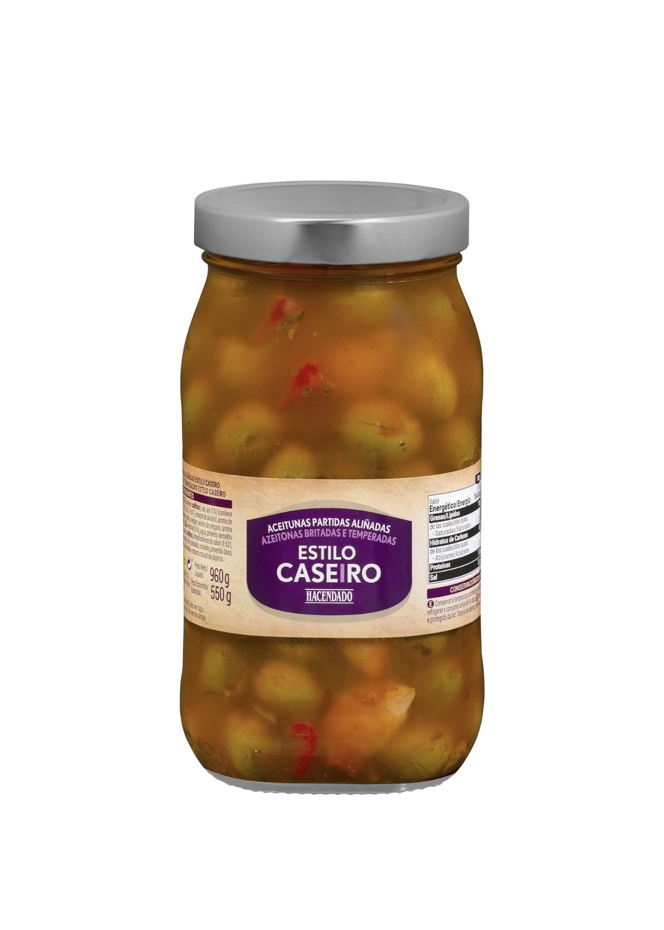 Оливки Estilo Caseiro Hacendado — это традиционный испанский рецепт в «домашнем стиле». В составе зелёные оливки с кусочками овощей и специями в ароматном маринаде. Вкус более насыщенный и пряный по сравнению с классическими вариантами. Отлично подходят как самостоятельная закуска или дополнение к мясу и сырам.